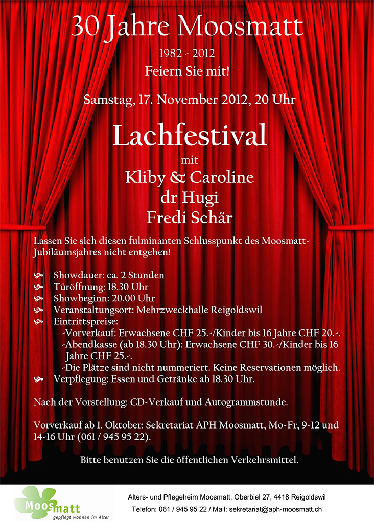 Vorverkauf: ab 1.10. Tel.061 – 945 95 22 (Mo-Fr.9-12 + 14-16h)